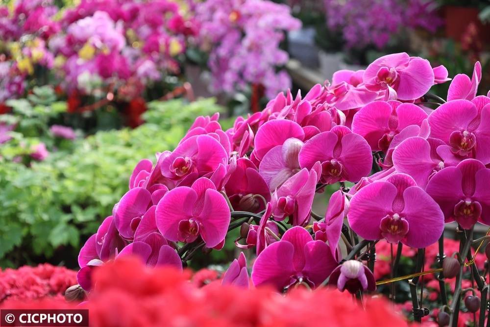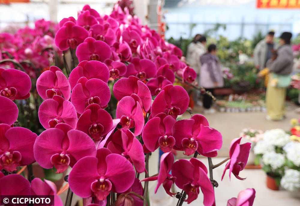 ↑2026年2月12日在山东省泰安市泰山区一家花草市集拍摄的蝴蝶兰。CICPHOTO/陈阳 摄