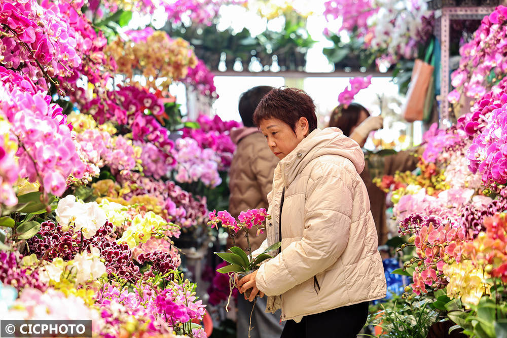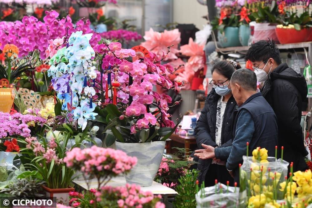 ↑2026年2月1日,主顾在山东省青岛市城阳区花木交游市集选购鲜花。CICPHOTO/王海滨 摄