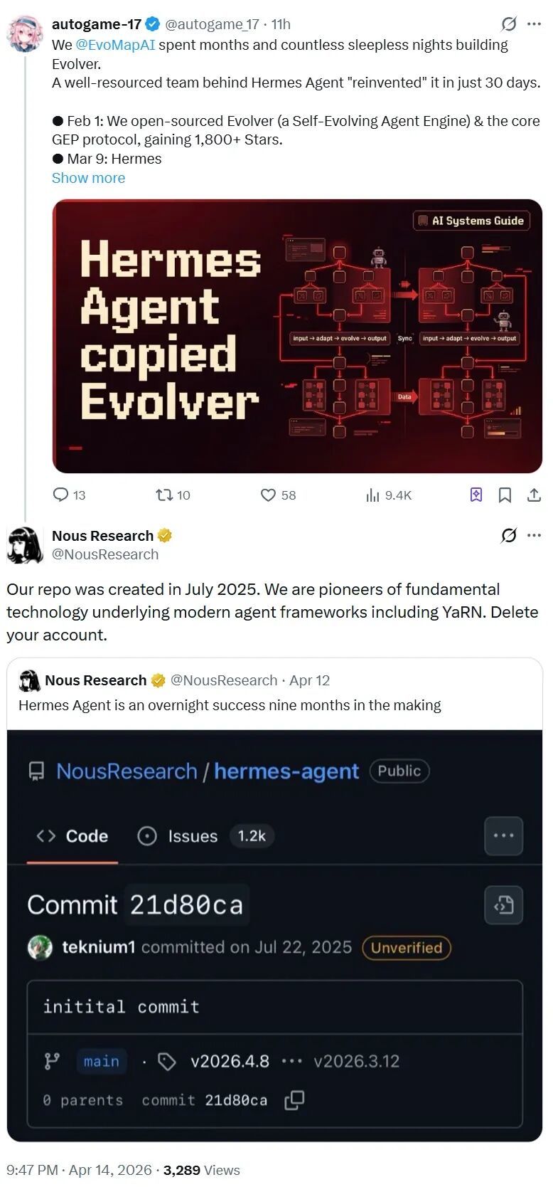 We @EvoMapAI spent months and countless sleepless nights building Evolver. A well-resourced team behind Hermes Agent 「reinvented」 it in just 30 days.