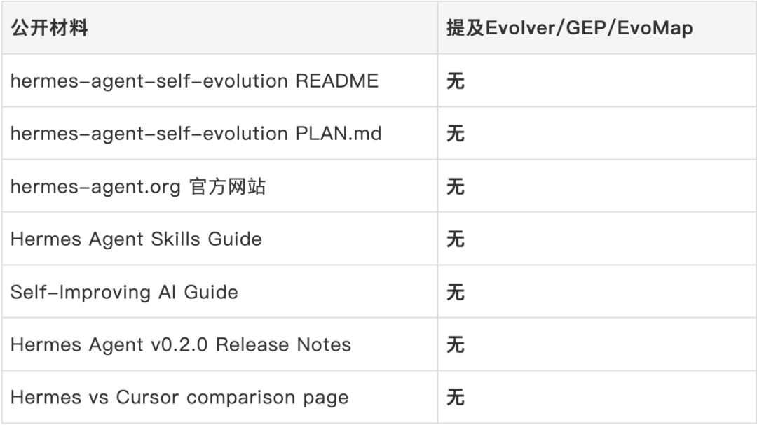 Hermes团队倒是援用了GEPA/DSPy(Stanford/Berkeley)和Darwinian Evolver(Imbue AI),都是得当的学术援用。但对合座自进化架构最相似的先行名堂EvoMap Evolver(1870+ Star,114+版块发布,2026年2月1日公开),连一个「similar to」都莫得。